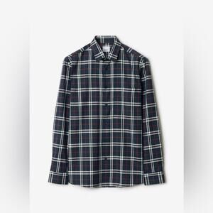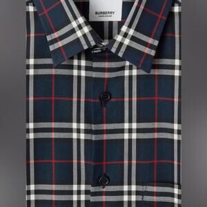 Elevate your wardrobe with this timeless Burberry button-down shirt, featuring a striking black and red check pattern. Crafted from 100% cotton, this long-sleeve shirt offers a comfortable fit suitable for both casual and smart-casual occasions.