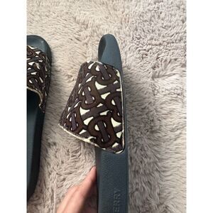 Burberry Size 42 Furley Tb Flock Leather Pool Slides In Bridle Brown