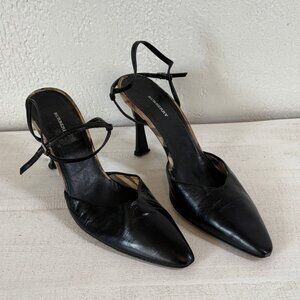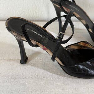 Burberry Slingback Heels Novacheck Black Leather Pointed Toe Size 39.5/US 9.5