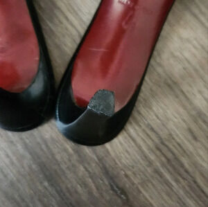 Leather uppers, in good pre-owned condition, one heel shoes wear, toes shoe some wear as well. Overall 7 out of 10, lots of life left!