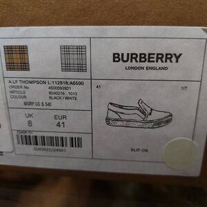 Burberry slip on shoes, very lil to no signs of wear. i wore only once but fit was very tight. i could never wear them again. they retail for $540.