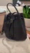 Stylish black bucket bag with a gold logo accent. Features a drawstring closure and adjustable strap.