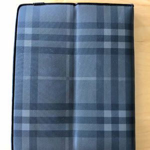 Sleek and fashionable, great for anyone looking to impress! This is a gently used Burberry Smoke Check iPad case. There are no major scuffs or marks on it, overall great condition. Black leather trim, leather interior, premium stitching. The case measures 10 x 8 inches and fits an iPad/Tablet up to 9.5 x 7.5 inches. A band goes around the front of the case to keep it closed, and the case also folds to be propped up (see photo, iPad not included). MSRP at least $249, but yours for only $65!