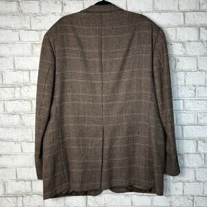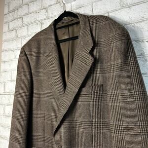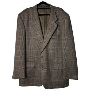 Burberry Sports Coat Suit Jacket Vintage Wool Plaid Houndstooth Brown 50 XL