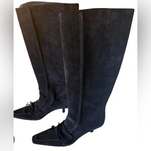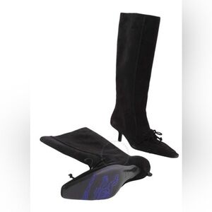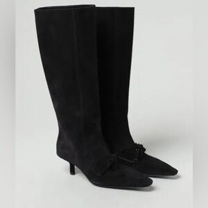 London-based Burberry injects its timeless aesthetic in these knee-high suede Storm boots. Sitting atop a refined kitten heel, they come in a classic squared-toe silhouette and monochromatic black colourway.