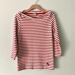 Burberry Striped Boat Neck Top in Red Cream Size S Petite