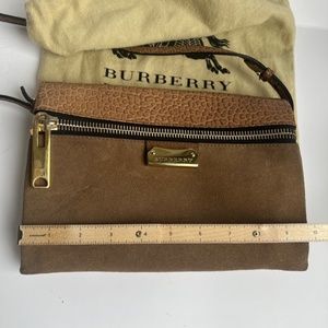 Burberry Suede Pebble Leather Logo Crossbody Zip Envelope Bag Purse