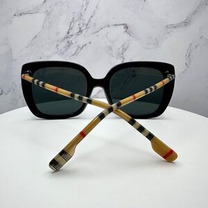 Burberry Sunglasses Black Square Cat Eye Checkered Arm Italy Authentic 54-20-140