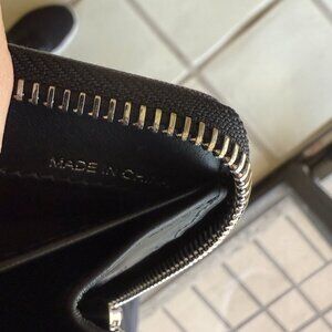Black leather interior with 12 card slots, 4 full length bill compartments, zip close center compartment