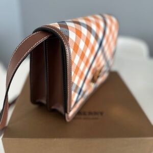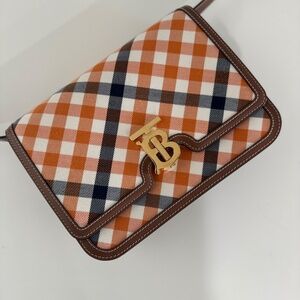 - Style / Type: Shoulder / flap bag in check/plaid canvas
