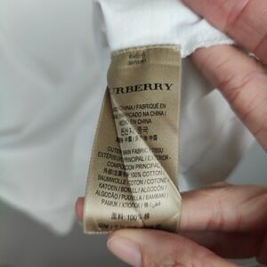Keywords: Burberry, T-shirt, V-neck, White, Red Logo, Mens, Large, Designer, Casual, Short Sleeve, Equestrian Knight, London England, Crew Necknt