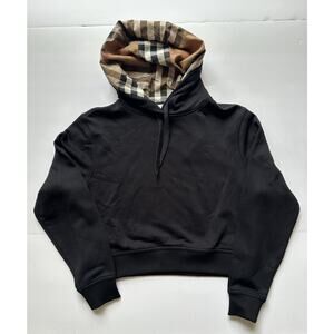 Burberry Talley Logo Checked Sweatshirt with Hoodie Black L 8084391 NWT $760