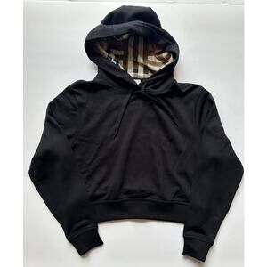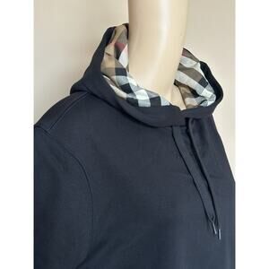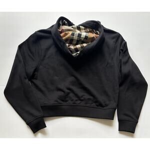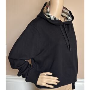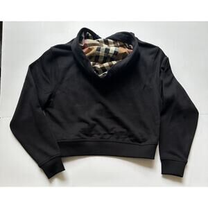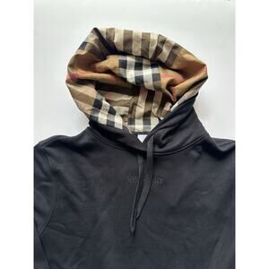 Burberry Talley Logo Checked Sweatshirt with Hoodie Black S 8084391 NWT $760