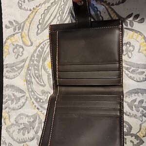 Stylish Burberry compact wallet with iconic check pattern. Features tan and brown hues. Compact and elegant. Must. evidence of use is the coin pouch but not bad considering the light interior.