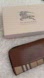 Burberry Tan and Brown Leather Wallet with Plaid Design
