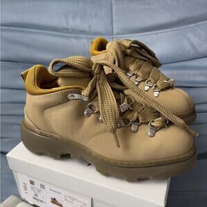 Explore the outdoors with these stylish tan hiking boots. Designed for comfort and durability, they are perfect for any adventure.