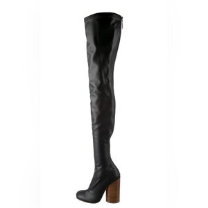 Burberry Thames Over the knee Black Leather Boots with Wooden Heel