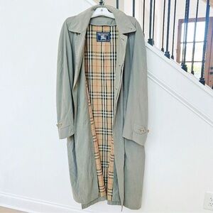 Burberry Trench Coat 70's Vintage Novacheck 42 L Olive Sage Grey Liner Unisex