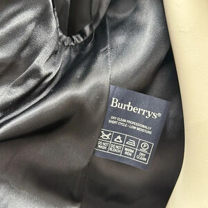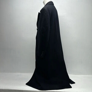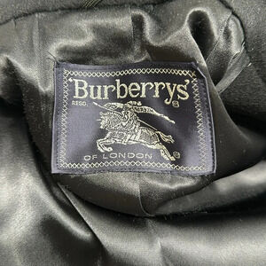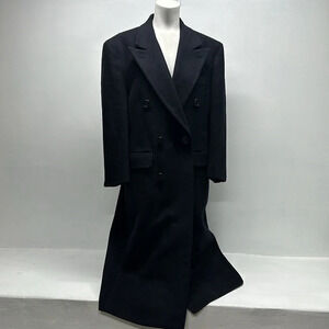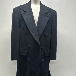 Burberry Trench Coat Cashmere Wool Blend Button Down Front Dark Navy Blue Vintage Large *