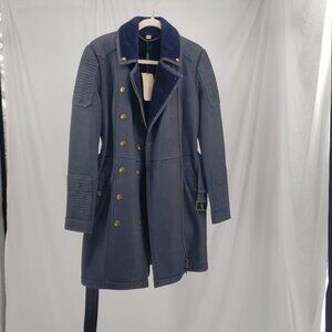 Burberry Mid-length Shearling Biker Double Breasted Trench Coat Indigo