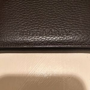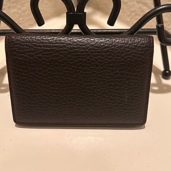Burberry Unisex Small Bifold Card Case Coin Pouch Brown Pebbled Leather Minimalist