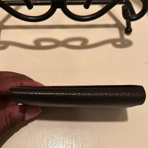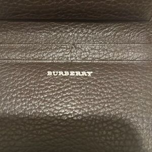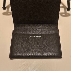 Burberry Unisex Bifold Card Case Coin Pouch Brown Pebbled Leather Minimalist