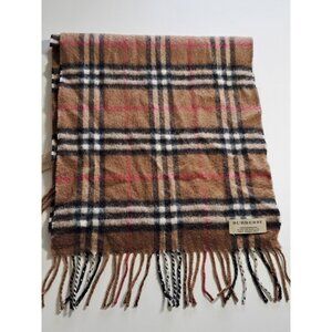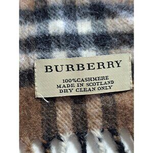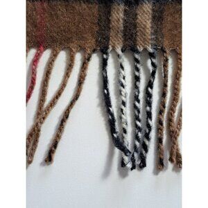 The Burberry Unisex Cashmere Scarf is a luxurious accessory made in Scotland with a classic black, brown, and red plaid design and fringe accents. Crafted from high-quality cashmere knit fabric, this rectangular scarf is perfect for both men and women to wear during the winter and fall seasons. The Burberry brand ensures both style and durability, making this scarf a versatile and stylish addition to anyone's wardrobe. It is recommended to dry clean only to maintain its quality. See pictures for few small holes. luxury Minimalist Career Office Church Capsule wardrobe piece preppy old money