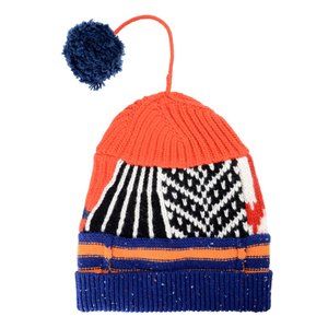 BURBERRY UNISEX CASHMERE WOOL MULTI-COLOR PATCHWORK POMPON BEANIE HAT