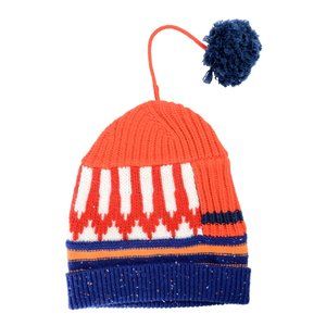 This is authentic Burberry Unisex Cashmere Wool Multi-Color Patchwork Pompon Beanie Hat