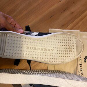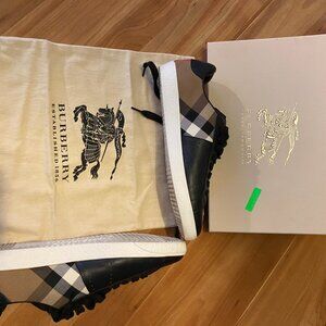 Only worn once, iconic Burberry Gifford sneakers with original box and dust bag. Size US 11 or 44 European. Black and archive beige. Super comfortable.