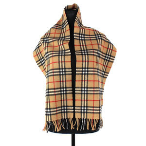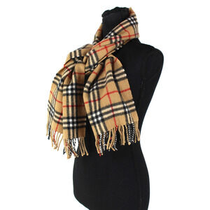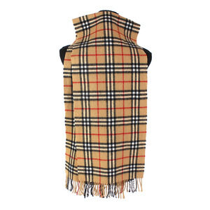 Burberry VTG Nova Check Scarf Tan Lambswool Fringe Trim Rectangle Neck Scarf