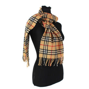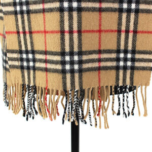 VTG BURBERRY TAN NOVA CHECK PLAID LAMBSWOOL FRINGE TRIM NECK SCARF