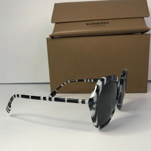 Burberry Sunglasses. Series Vanessa. Series number: BE4375F. Color code: 400487. Shape: Geometric. Lens Width: 57 mm. Lens Bridge: 18 mm. Arm Length: 140 mm. 100% UV protection. Frame Material: Plastic. Frame Color: Check White/Black. Lenses Type: Dark Grey. Rim Style: Full-Rim. 💯 Original Burberry Vanessa Dark Grey Geometric Ladies Sunglasses BE4375F 400487 57.