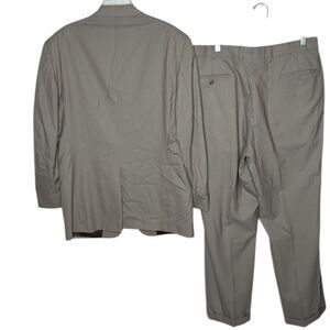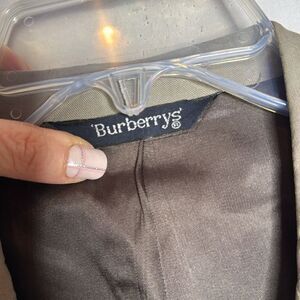 Burberry Vintage 100% Pure Wool Tan Suit. No size tag. Pant size 34 and jacket size 42. See the measurements below. Union made. Very good used condition. There are two pinholes on the leg of pants. Jacket is in excellent condition.