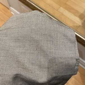 A bit hard to capture coloring but this is a gray/tan/beige base with black checkered pattern/dotted knit pattern throughout