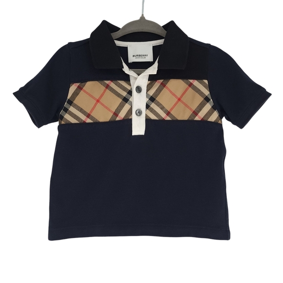 Burberry Vintage Check Panel Polo Shirt in Navy