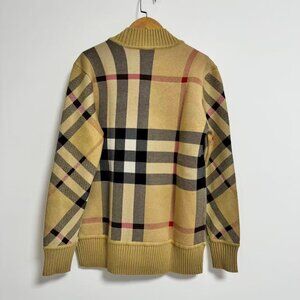 In celebration of the evolution of timeless prints and traditional house codes, Burberry's SS22 collection explores the Vintage Check print. First introduced in the '20s, the signature patterns reign has been as iconic as the brand themselves. Sticking to traditions, this jacquard-knitted cardigan is highlighted by the recognisable print and a soft merino wool construction.