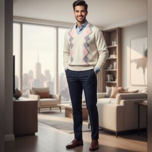 Burberry Vintage Lambswool V-Neck Cream Sweater Pink Grey Detail SIze XL
