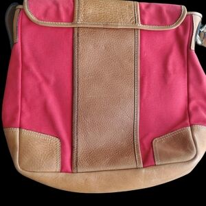 This vintage Burberry Haymarket shoulder bag is a stunning addition to any wardrobe. The exterior is made of durable canvas and features a vibrant red color with gold hardware accents. The bag is adorned with a multicolor lining and comes with a leather handle/strap for easy carrying.