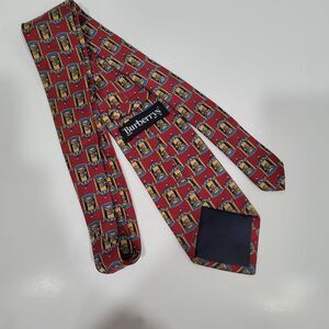 Burberry Vintage Men's Neck Tie Made In Italy Designer Silk Blue Red Yellow Logo