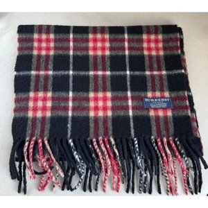 Burberry Vintage Scarf Classic Nova Check Cashmere Black Red Color