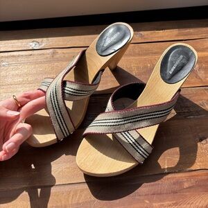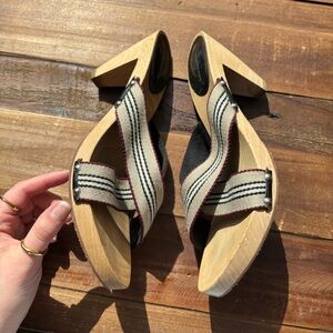 Burberry Vintage Striped Wooden Heeled Cross Strap Sandals Size 40