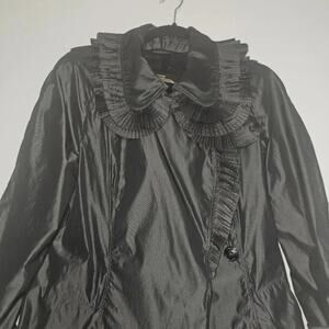 Burberry Vintage Trench Coat pleated/ ruffle trim collar Black Lightweight sz 42