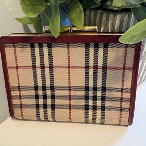 Authentic. Burberry wallet. some coin residue and tiny stain on exterior, otherwise, great condition.