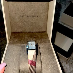 Burberry Watch. Band is in the Burberry pattern, watch accents are silver.