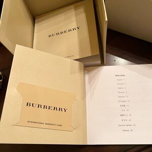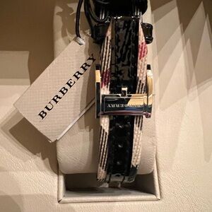 Authentic Burberry Unisex Watch - in original box. Original tags. Brand new, never worn. Authenticity card included. Barbary band w/black patent leather trim.
