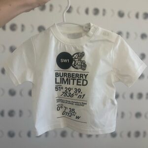 Brand new with tags kids Burberry tee! Authentic. White with black graphic. Size 6m. Originally $200+
