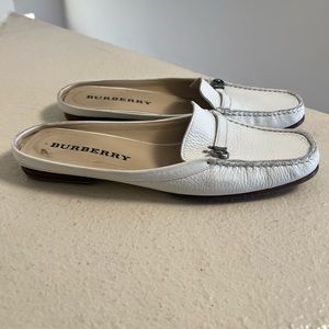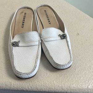 Burberry White Pebble Leather Mules Loafers Clogs Slip-on Slippers. Size 9
