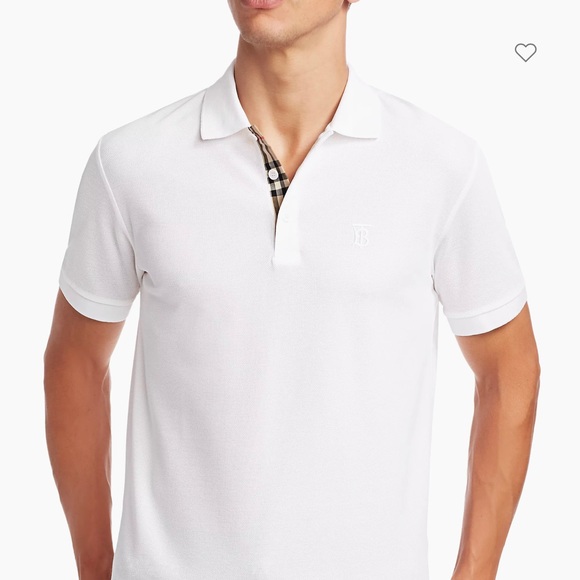Burberry White Polo with 3 Button Plaid Placket Size