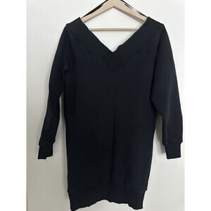The Burberry Pewter Blue One-Shoulder Cotton-Blend Sweatshirt Dress is a stylish piece crafted from a cotton blend, featuring an asymmetric, off-shoulder design with ribbed details on the cuffs, collar, and hem. It has an oversized, long sweater style, offering both comfort and